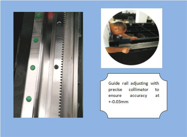 | Нэр:Нарийвчлалтай шугаман гарын авлага Дэвшилтэт огтлох систем, лазерын хүч ба servo хөдөлгөөн нь бие биенээ төгс тохируулж, өндөр нарийвчлалтай араа, өлгүүр хөтлөгч систем, өндөр хурдтай, нарийвчлалтай боловсруулж өгдөг. |